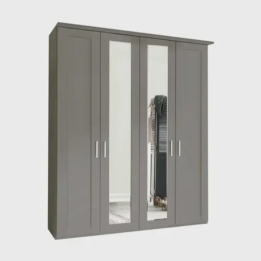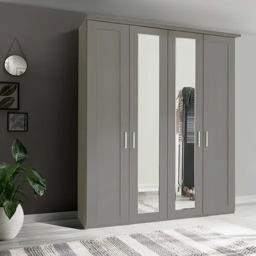 For Perfect: For perfect style and practicality, this cabinet features mirrored doors, adjustable shelves, and a sleek pebble grey finish.
